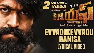 Evvadikevvadu Banisa Lyrics | K.g.f: Chapter 1 - Telugu | Srinidhi Shetty | Adithya Lyengar | Ravi Basrur